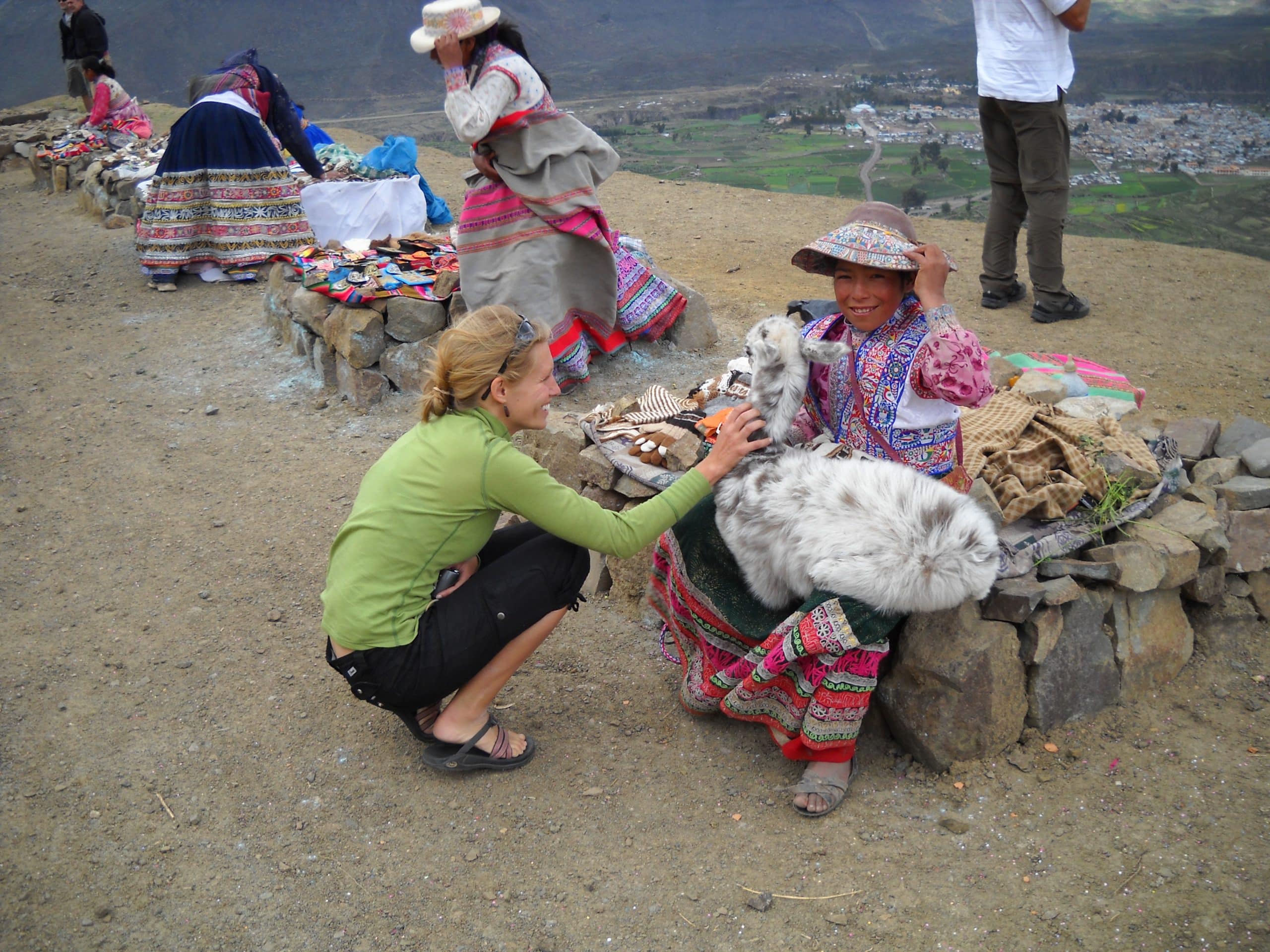 I’ve been so bad about getting on my computer,so I hadn’t seen your last blog. Sorry you were having such a difficult time. Loneliness can do a number on you. Nothing like a great vacation to pick up your spirits! Fantastic pictures. I just LOVE the colors, materials and design of the clothing on those ladies on your bus tour – expecially the one with the baby alpaca. The Colca Valley Canyon pictures are amazing. It must be neat to see it up close and personal! I just love that you are sharing your experiences with us. Thanks. Take care. Love, Lee