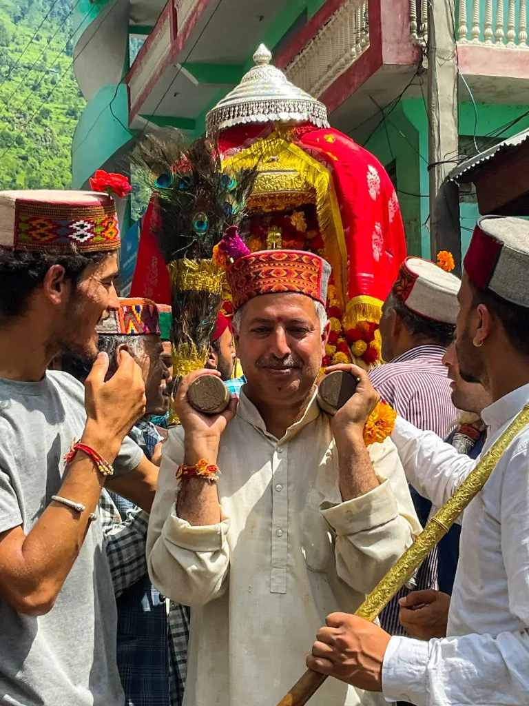 That’s Tirthan Valley, a mesmerizing green landscape, still dodging the over-tourism of Himachal. Therein flows the Tirthan River, where all the local deities are carried for Visarjan, a Hindu ritual of drowning the idol, signifying goodbye.