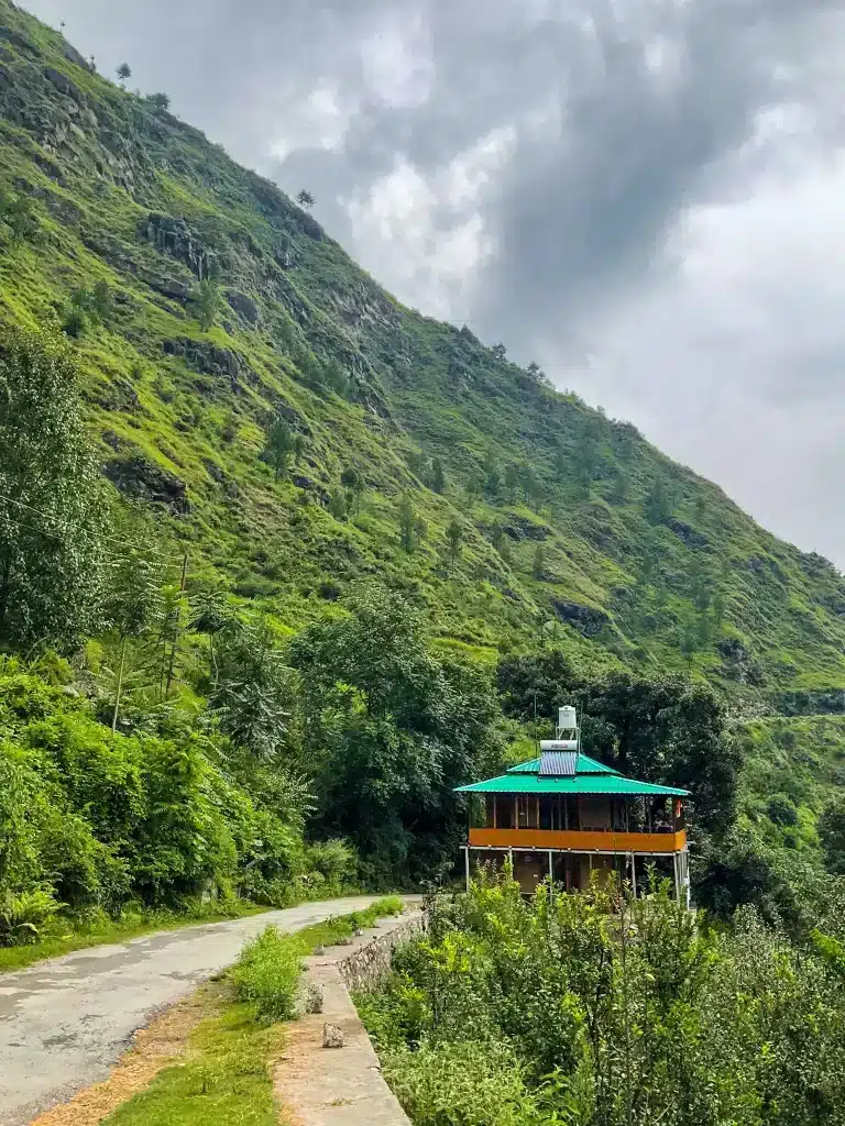 Mazel Tov Hostel Tirthan is closest to Chhoie Waterfall on the Banjar Road. A few more have also popped up! For $6-7 per night, it doesn’t get any better!