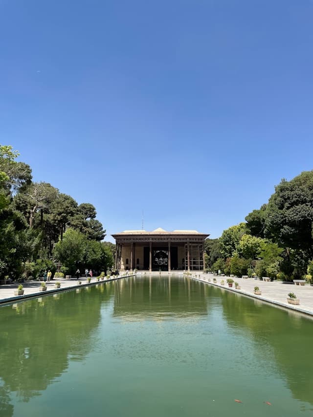 Chehel Sotoun is an ancient pavilion constructed by Shah Abbas Safavi for the reception of ambassadors and kings. The interior and the ceiling of this marvelous monument are covered with frescos and paintings on ceramic that depict specific historical scenes like the battles between Iran and other countries. Like most other monuments and pavilions, Chehel Sotune is surrounded by a beautiful garden. Although this pavilion has only 20 columns, we call it Chehel Sotune, which means forty columns, which refers to the reflection of the columns in the long pool in front of the building.