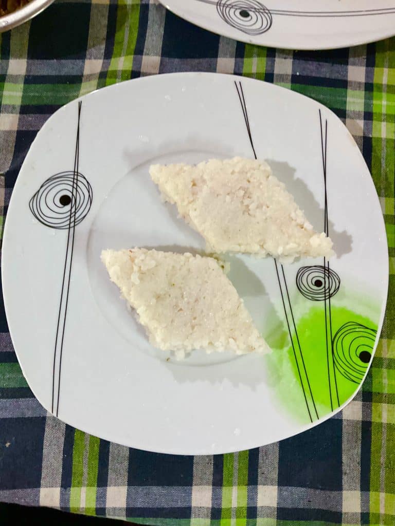More grounded in South Indian origin, Pittu is moulded into cylindrical molds using a metal or bamboo tube to engineer a crumbly texture with steamed rice flour and freshly-grated coconut. The dough takes long shapes and gets pressed into a ‘Pittu steamer’ (Pittu bambuwa) for almost 7 minutes. Another variation of Pittu is a blend of grated coconut and red rice flour for a nuttier taste (or coconut treacle for a sweeter taste).
